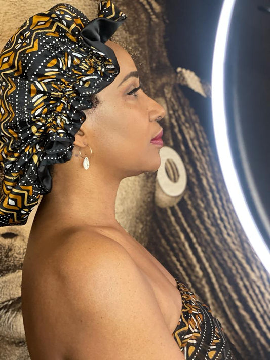 Mama Theresa´s Satin Schlafkappe für Afro-Locken - Leiter- Bogolan Print